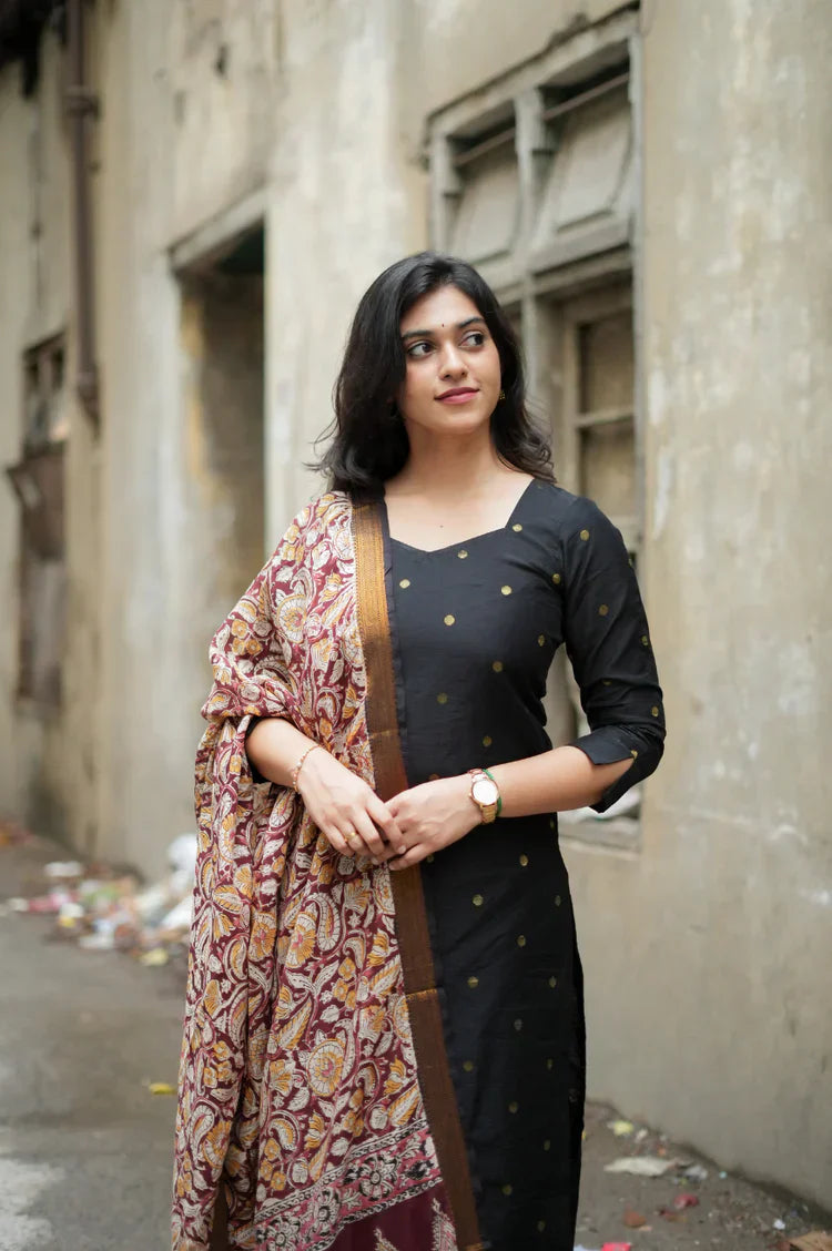Pure kota silk suit handcrafted with beautiful silver embroidery loading