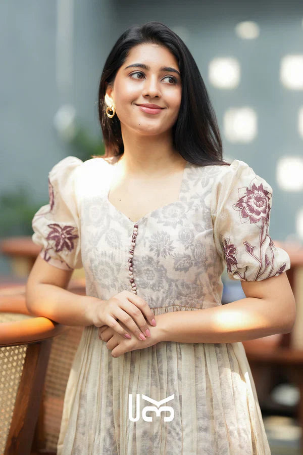 Designed with Puff sleeves and a modest V neckline, the silhouette is flowy and flattering. The tiered structure adds volume and movement, making it ideal for coffee dates, cultural get-togethers, or easy festive wear.